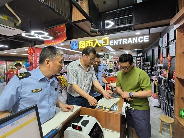 寿县纪委监委紧盯国庆、中秋等关键节点,采取“室组地+职能部门”监督模式,深入各大商超、餐饮、酒店等重点场所,严查隐形变异“四风”问题。图为该县专项监督组在商超了解相关情况。(寿县纪委监委 供 王弋 摄)