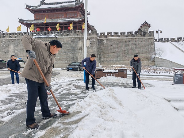 赴文明创建包保社区开展扫雪除冰工作